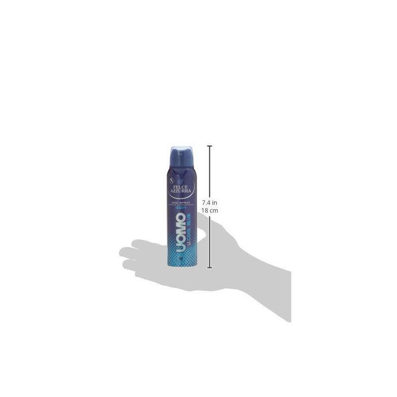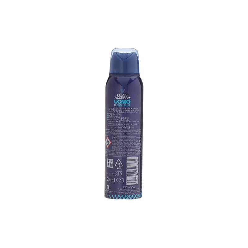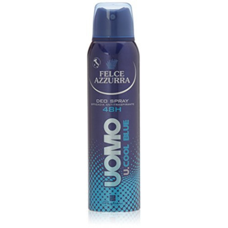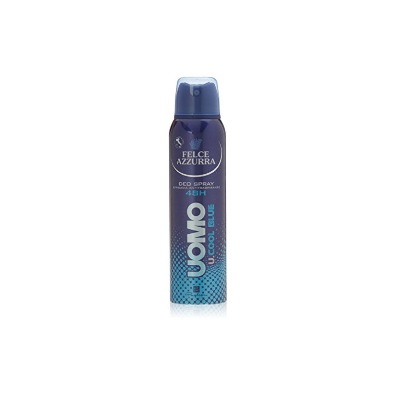 FELCE AZZURRA DEODORANTE UOMO SPRAY 150ML.U.COOL BLUEDettagli prodotto Marca: Felce Azzurra EAN: 8001280027703 Dimensioni confezione: 3 x 3 x 17 cm  - ( Peso: 26 g )  Numero di colli: 1 Codice: SKU007694
